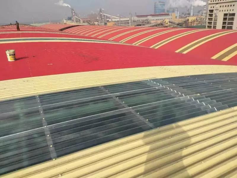 前期使用其他廠家彩涂產品,短時間內多次發生銹蝕穿孔。后經與寶鋼黃石公司聯系并邀請進行現場走訪,發現此批彩涂產品使用在煤氣發生爐區域,車間內不僅屬高溫、高濕環境,還有二氧化硫等還原氣氛,鍋爐排放粉塵顆粒附著腐蝕較大,對產品耐蝕性提出更高的要求。經與業主溝通,選用鍍鋁鋅基板,并提升背面膜厚及涂料種類(環氧改為氟碳涂層,背面漆膜≥20um),經5年時間跟蹤,漆膜完整,大大增強了使用壽命,降低更換周期,得到業主認可。使用時間2013年,共計使用400噸。