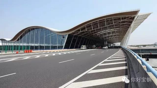 我跟浦東機(jī)場(chǎng)二期航站樓是在2006年認(rèn)識(shí)的。每次出遠(yuǎn)門的時(shí)候,都會(huì)看見(jiàn)這位老友。星月白的顏色,大鵬展翅的造型,寓意著上海的騰飛。而當(dāng)初為了滿足它最長(zhǎng)單跨140米的要求,寶鋼特別研制了新的鋼種S250,保證了材料的一次性連續(xù)性成型。